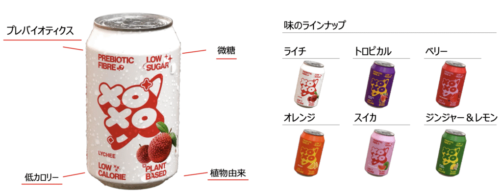 日本は「腸活」への関心が世界的にも高い市場のひとつであり、機能性飲料・ウェルネス飲料への需要は継続的に拡大しています。一方で、「ウェルネス×フルーツ系炭酸飲料」というポジションはまだ空白領域として残っており、XOXOが持つ商品設計・ブランド世界観・欧州での流通実績は、この市場において明確な差別化要素となり得ます。